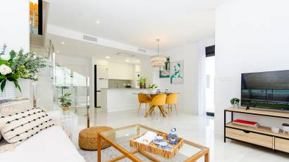 L'intérieur de ces maisons à Orihuela est conçu avec un accent sur le confort et la fonctionnalité. Les sols en céramique apportent une touche moderne et sont faciles à entretenir. Les maisons sont entièrement meublées, ce qui facilite le déménagement et permet de profiter de la nouvelle maison dès le premier jour. La cuisine est équipée d'appareils de haute qualité, et les placards intégrés dans les chambres offrent un espace de rangement généreux. Le système de climatisation, avec une pré-installation supplémentaire, assure une ambiance agréable tout au long de l'année. Les volets électriques et le vidéophone ajoutent un niveau supplémentaire de confort et de sécurité.