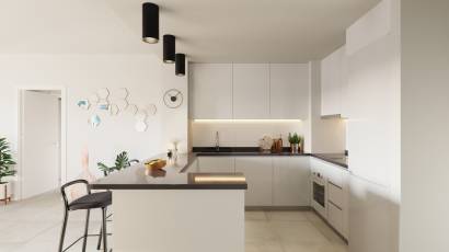 L'intérieur de chaque appartement et penthouse est équipé de caractéristiques modernes garantissant une expérience de vie confortable et sophistiquée. Les sols en grès cérame ajoutent une touche d'élégance et sont faciles à entretenir. La climatisation est assurée par un système de conditionnement d'air, idéal pour maintenir une température agréable toute l'année. Les cuisines sont entièrement équipées d'appareils électroménagers de haute qualité, facilitant les tâches quotidiennes. De plus, les placards intégrés offrent un vaste espace de rangement, maintenant l'ordre et l'organisation à la maison. La distribution comprend trois chambres et deux salles de bains, offrant un espace vaste et fonctionnel pour toute la famille. La sécurité est renforcée par un interphone vidéo, offrant tranquillité et contrôle d'accès.