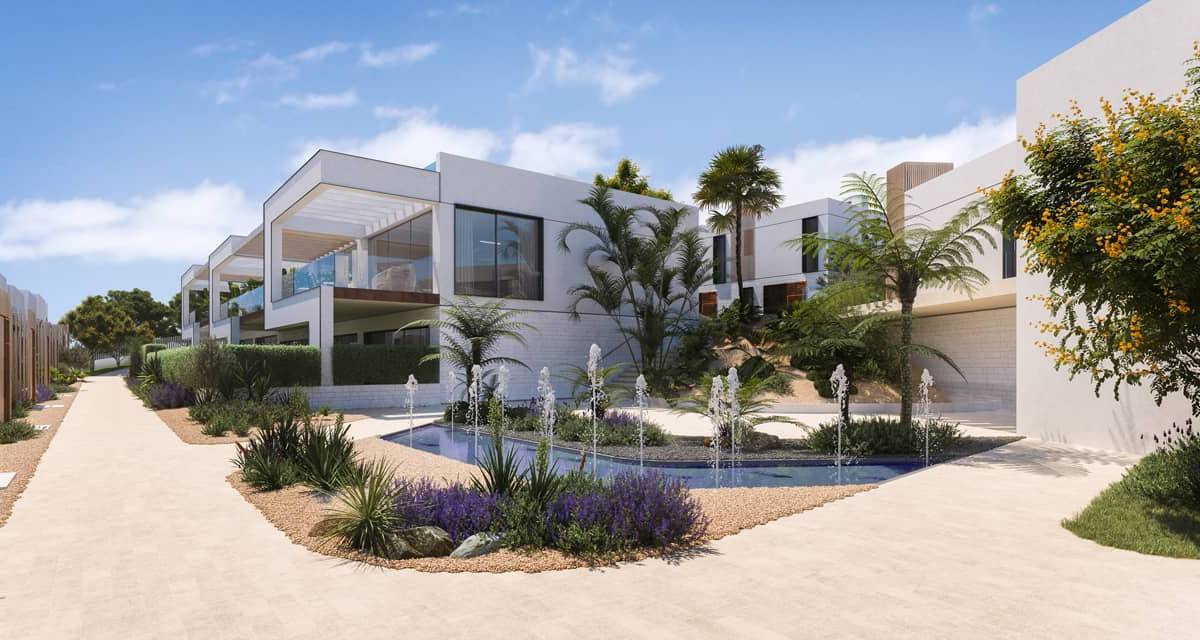 Les maisons mitoyennes disposent d'extérieurs attrayants comprenant terrasses et solarium, parfaits pour profiter du climat méditerranéen et des vues qu'offre la région. Chaque maison dispose d'un jardin privé, offrant un espace supplémentaire pour les loisirs en plein air. De plus, l'option de piscine privée dans certaines unités ajoute une touche d'exclusivité et de confort, permettant aux résidents de profiter d'une baignade rafraîchissante dans l'intimité de leur foyer.