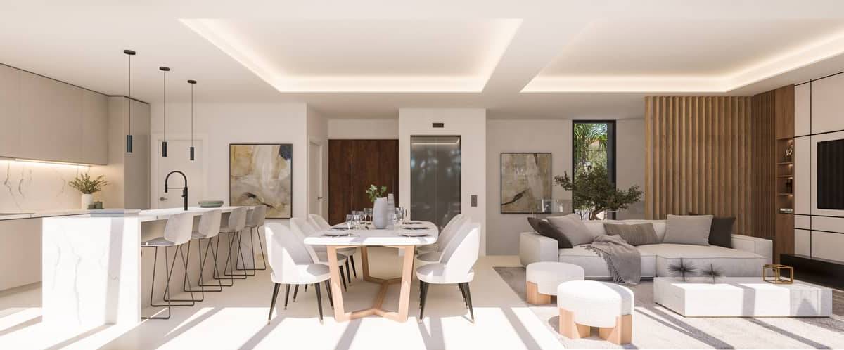 L'intérieur des maisons est conçu pour offrir un maximum de confort et de fonctionnalité. Les sols en grès cérame apportent une touche d'élégance et de durabilité. Les maisons sont équipées de la climatisation et du chauffage par le sol, garantissant une température agréable tout au long de l'année. La domotique et l'interphone vidéo ajoutent un niveau de sécurité et de confort, tandis que les appareils électroménagers intégrés facilitent le quotidien. Les placards intégrés optimisent l'espace de rangement, maintenant l'ordre et l'organisation dans la maison.