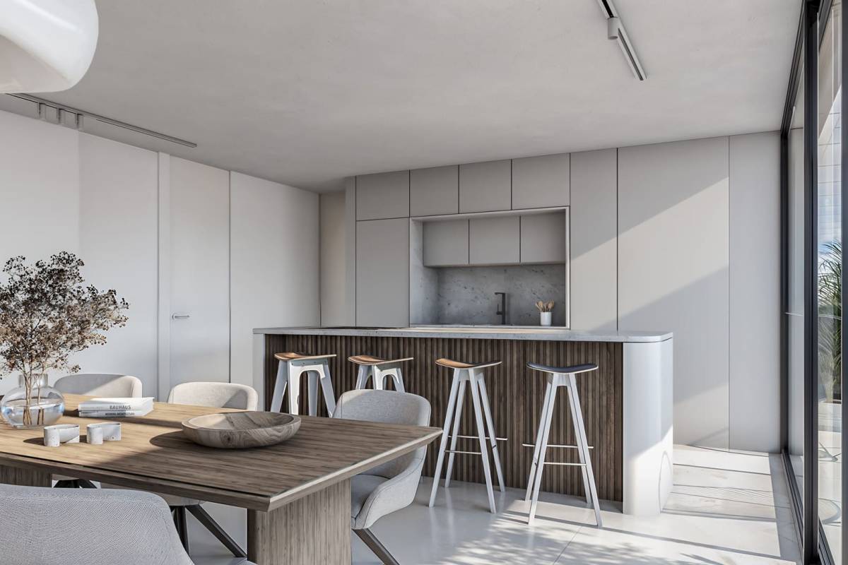 L'intérieur de chaque logement est conçu pour offrir un maximum de confort et de fonctionnalité. Avec des options de 2 et 3 chambres, et 2 salles de bains, les propriétés sont conçues pour s'adapter à différents besoins familiaux. Les sols en grès cérame apportent non seulement une finition élégante, mais sont également faciles à entretenir. L'inclusion d'un vidéophone et de volets électriques ajoute un niveau de sécurité et de confort supplémentaire. Les appareils électroménagers intégrés et les placards encastrés optimisent l'espace, permettant un rangement efficace et un design épuré et moderne.