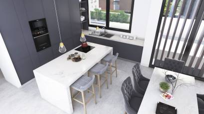 L'intérieur de la villa est soigneusement conçu pour offrir un maximum de confort et de luxe. Avec cinq chambres et cinq salles de bains, chaque espace est pensé pour fournir intimité et confort. La villa est équipée d'un système domotique qui permet de contrôler divers aspects de la maison de manière efficace. Les sols en grès cérame apportent une touche de sophistication et sont faciles à entretenir. De plus, elle dispose d'appareils électroménagers haut de gamme, de placards intégrés et d'un interphone vidéo qui garantit sécurité et confort. Le garage privé ajoute un niveau supplémentaire de commodité pour les résidents.