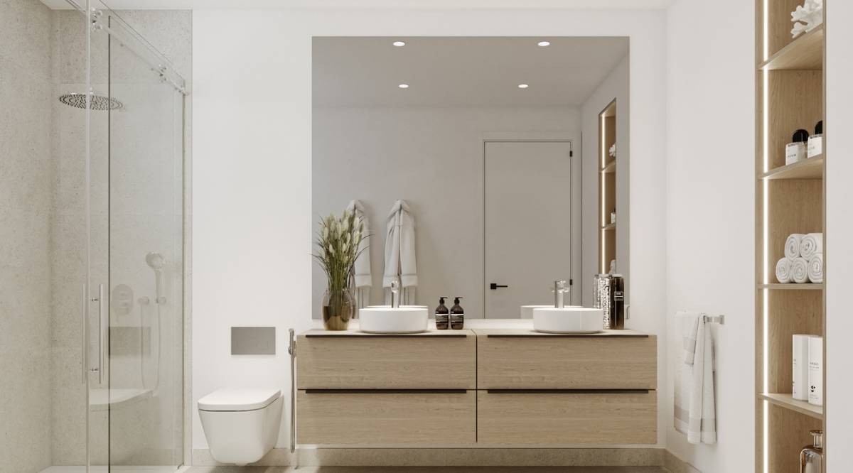 Wnętrza mieszkań zaprojektowano z myślą o maksymalnym komforcie i funkcjonalności. Podłogi z gresu porcelanowego dodają elegancji i trwałości. Klimatyzacja jest zapewniona dzięki systemowi klimatyzacji, co gwarantuje przyjemną temperaturę przez cały rok. Kuchnie są w pełni wyposażone w nowoczesne urządzenia, ułatwiając codzienne życie. Wbudowane szafy zapewniają efektywne przechowywanie, utrzymując przestrzenie w porządku i bez bałaganu. Bezpieczeństwo i wygoda są wzmocnione instalacją wideodomofonów w każdej jednostce.