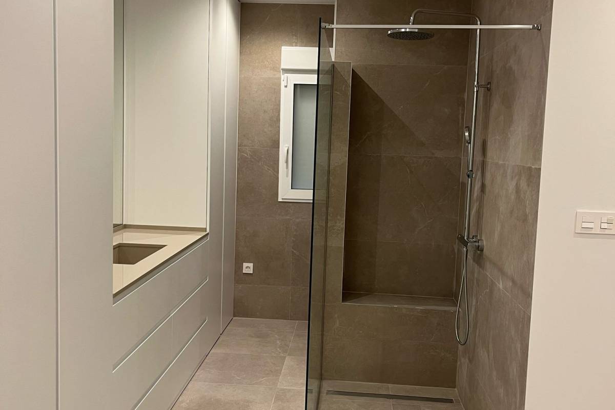Wnętrze chalet zostało starannie zaprojektowane, aby zapewnić komfort i styl. Posiada trzy sypialnie, co czyni go idealnym dla rodzin lub dla tych, którzy potrzebują dodatkowej przestrzeni dla gości lub biura. Dwie łazienki są wyposażone w nowoczesne wykończenia. Podłoga z gresu porcelanowego dodaje elegancji i jest łatwa w utrzymaniu. Elektryczne rolety i klimatyzacja zapewniają komfortowe warunki przez cały rok. Kuchnia jest wyposażona w nowoczesne urządzenia, co ułatwia codzienne obowiązki. Wbudowane szafy w sypialniach oferują dużo miejsca do przechowywania, utrzymując porządek i organizację.