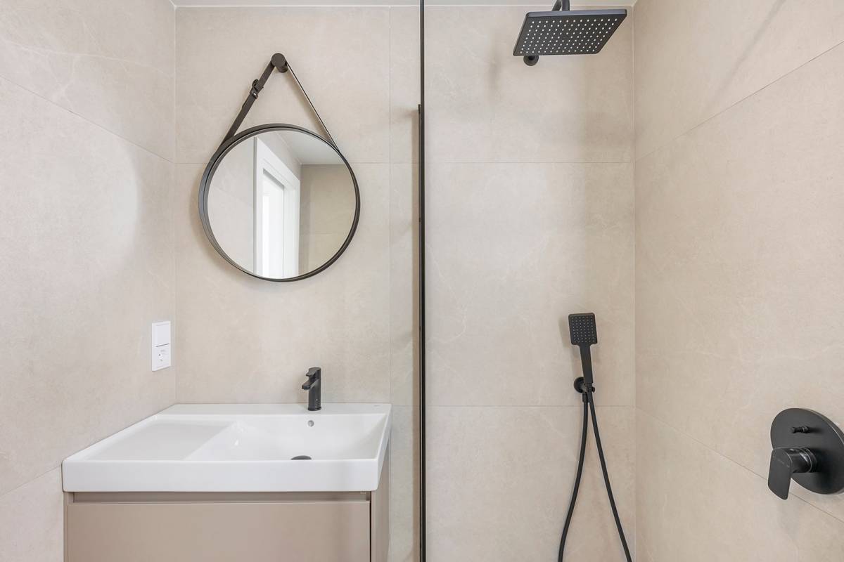 Wnętrze tych domów zaprojektowano z dbałością o szczegóły i funkcjonalność. Domki oferują opcje z 2 lub 3 sypialniami i 2 lub 3 łazienkami, dostosowując się do różnych potrzeb rodzinnych. Podłogi z gresu porcelanowego nadają nowoczesny wygląd i są łatwe w utrzymaniu. Kuchnia jest wyposażona w sprzęt AGD, co ułatwia codzienne życie od pierwszego dnia. Klimatyzacja zapewnia komfortowe warunki przez cały rok. Wbudowane szafy optymalizują przestrzeń do przechowywania, utrzymując porządek i estetykę.