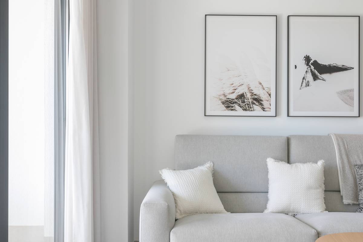 Wnętrze tych mieszkań zostało starannie zaprojektowane, aby zapewnić nowoczesne i funkcjonalne otoczenie. Podłogi z porcelany dodają elegancji i trwałości, a elektryczne rolety zwiększają komfort i efektywność energetyczną. Kuchnie są wyposażone w wysokiej jakości sprzęt AGD, ułatwiając codzienne życie. Wbudowane szafy optymalizują przestrzeń do przechowywania, utrzymując porządek i estetykę. Układ obejmuje opcje z 2 lub 3 sypialniami oraz 2 lub 3 łazienkami, dostosowując się do różnych stylów życia.