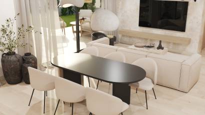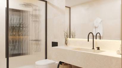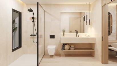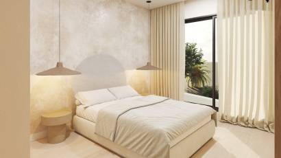 Wnętrze tych niezależnych domów zaprojektowano z myślą o komforcie i funkcjonalności. Podłogi z gresu porcelanowego dodają elegancji i są łatwe w utrzymaniu. Domy wyposażone są w nowoczesne urządzenia i posiadają elektryczne rolety dla większej wygody. Wbudowane szafy oferują dużo miejsca do przechowywania, a ogrzewanie podłogowe zapewnia ciepło w chłodniejsze miesiące. Dodatkowo, wstępna instalacja klimatyzacji umożliwia łatwe dostosowanie do potrzeb klimatycznych każdego mieszkańca. Opcje układu obejmują domy z 3 lub 4 sypialniami i 3 łazienkami, dostosowując się do różnych potrzeb rodzinnych.