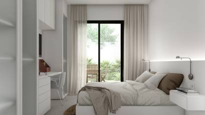 Wnętrze tych niezależnych domów zostało zaprojektowane, aby zapewnić maksymalny komfort i nowoczesność. Z trzema sypialniami i dwiema łazienkami, każda przestrzeń jest starannie rozplanowana, aby zapewnić wygodę mieszkańcom. Podłogi z gresu porcelanowego dodają wyrafinowania, a elektryczne rolety i wideodomofon zapewniają wygodę i bezpieczeństwo. Wbudowane szafy zapewniają efektywne przechowywanie, a preinstalacja klimatyzacji zapewnia przyjemną atmosferę przez cały rok.