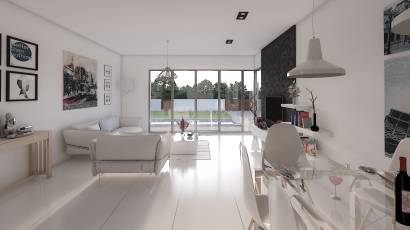 Wnętrze tych domów wolnostojących w Los Alcázares zostało zaprojektowane, aby zapewnić maksymalny komfort i funkcjonalność. Układ obejmuje 3 sypialnie i 2 łazienki, a każde pomieszczenie zostało zaprojektowane z myślą o potrzebach nowoczesnego życia. Podłogi z porcelany dodają elegancji i są łatwe w utrzymaniu, a dołączone urządzenia ułatwiają codzienne życie. Wbudowane szafy w sypialniach oferują dużo miejsca do przechowywania, utrzymując porządek i estetykę. Ponadto każdy dom posiada garaż, zapewniając wygodę i bezpieczeństwo dla pojazdów. Wideodomofon dodaje dodatkowy poziom bezpieczeństwa, umożliwiając łatwą i skuteczną kontrolę dostępu do domu.