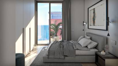 Wnętrza apartamentów i penthousów zostały zaprojektowane tak, aby oferować nowoczesną i przytulną atmosferę. Mieszkania posiadają dwie sypialnie i dwie łazienki, zapewniając przestrzeń i prywatność dla wszystkich członków rodziny. Podłogi łączą gres i panele podłogowe, dodając elegancji i ciepła. Kuchnia jest wyposażona w nowoczesne urządzenia, ułatwiając codzienne obowiązki. Komfort zapewnia klimatyzacja i rolety elektryczne, a wbudowane szafy oferują praktyczne i efektywne rozwiązania do przechowywania. Bezpieczeństwo i wygoda są wzmocnione przez wideodomofon.