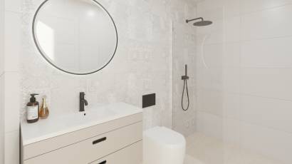 Wnętrze tych domów wolnostojących zostało zaprojektowane z myślą o maksymalnym komforcie i funkcjonalności. Z trzema sypialniami i dwiema łazienkami, każde pomieszczenie jest starannie rozmieszczone, aby zapewnić komfort i prywatność. Podłogi z gresu porcelanowego dodają elegancji i trwałości. Elektryczne rolety i wbudowane szafy to standardowe funkcje, które poprawiają funkcjonalność domu. Dodatkowo, wstępna instalacja klimatyzacji zapewnia zawsze odpowiedni klimat wewnętrzny, dostosowując się do potrzeb każdej pory roku.