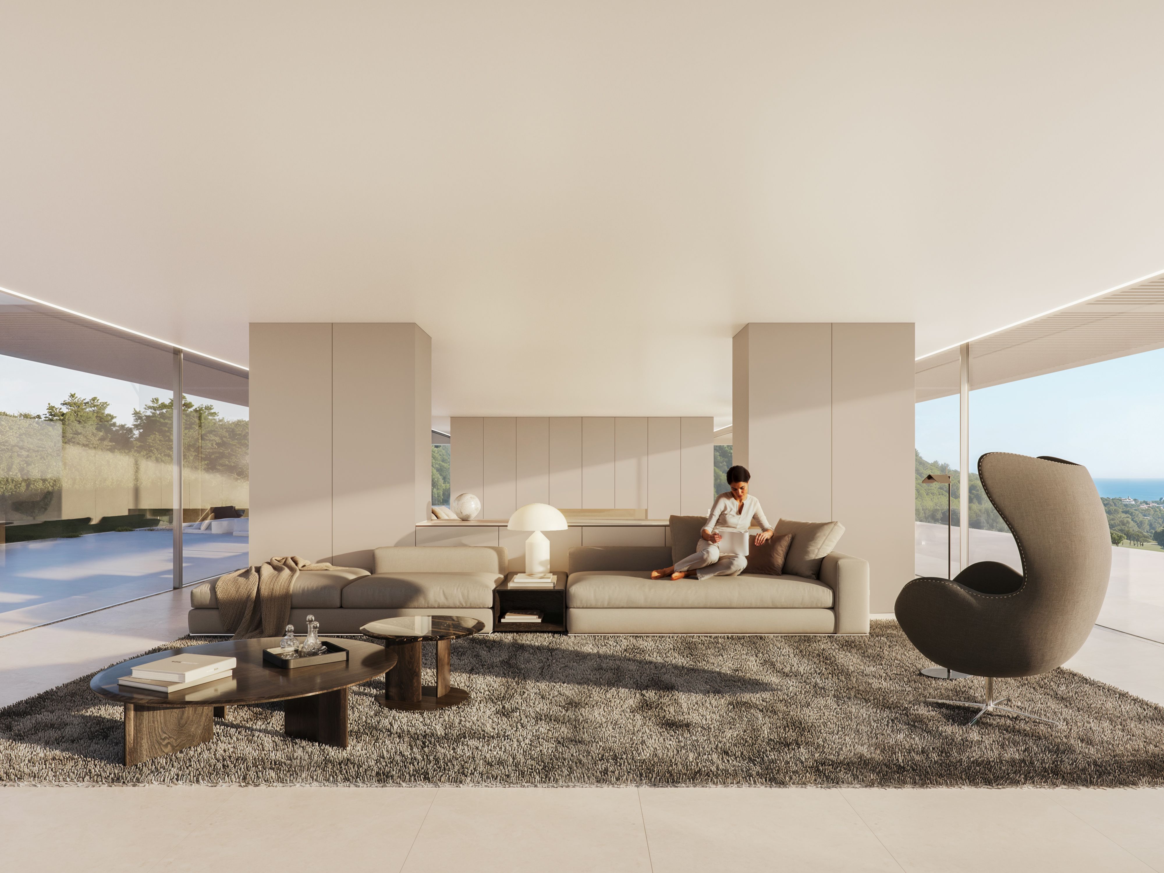 Wewnątrz willi znajduje się sześć sypialni, co zapewnia dużo miejsca dla rodziny i gości. Z siedmioma łazienkami, komfort i prywatność są gwarantowane dla wszystkich mieszkańców. Układ jest starannie zaprojektowany, aby zapewnić naturalny przepływ między strefami mieszkalnymi, gwarantując przytulną i funkcjonalną atmosferę. Ponadto willa zawiera garaż, co dodaje dodatkowy poziom wygody i bezpieczeństwa.