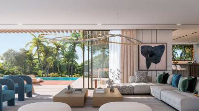 Wnętrza tych willi w Marbelli zaprojektowano z naciskiem na luksus i funkcjonalność. Z pięcioma sypialniami i sześcioma łazienkami każda willa oferuje przestrzeń dla rodzin lub gości. Układ obejmuje prywatny garaż, zapewniając wygodę i bezpieczeństwo dla pojazdów. Wille są wyposażone w technologię inteligentnego domu, umożliwiającą efektywne zarządzanie funkcjami domu. Klimatyzacja i ogrzewanie podłogowe zapewniają komfortową atmosferę przez cały rok. Wbudowane szafy oferują eleganckie i praktyczne rozwiązania do przechowywania.