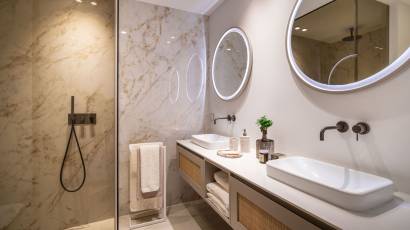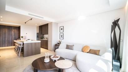 Wnętrze apartamentu na poddaszu zostało zaprojektowane, aby zapewnić maksymalny komfort i funkcjonalność. Posiada trzy sypialnie i dwie łazienki, co czyni go idealnym dla rodzin lub przyjmowania gości. Marmurowe podłogi dodają elegancji, a elektryczne rolety i system inteligentnego domu zapewniają wygodę i efektywność energetyczną. Kuchnia jest wyposażona w nowoczesne urządzenia, a wbudowane szafy oferują dużo miejsca do przechowywania.