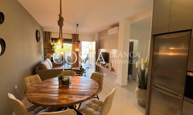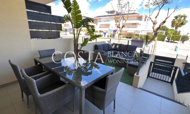 Zaledwie 300 metrów od plaży znajduje się ten piękny narożny apartament na parterze. Posiada on duży podniesiony taras z przodu i ogród z boku nieruchomości. Na prywatnej działce znajduje się również miejsce parkingowe.