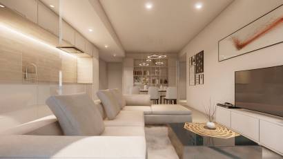 De interieurs van de penthouses zijn ontworpen om maximaal comfort en functionaliteit te bieden. De woningen beschikken, afhankelijk van de typologie, over twee of drie slaapkamers en twee complete badkamers, wat voldoende ruimte garandeert voor gezinnen of koppels. De indeling omvat een privé garage en een solarium, die extra opslag- en recreatiemogelijkheden bieden. De penthouses zijn uitgerust met airconditioning, moderne apparaten en inbouwkasten, wat zorgt voor een gezellige en praktische omgeving. Bovendien zijn ze voorzien van een video-intercom, wat een extra niveau van veiligheid en comfort voor de bewoners biedt.