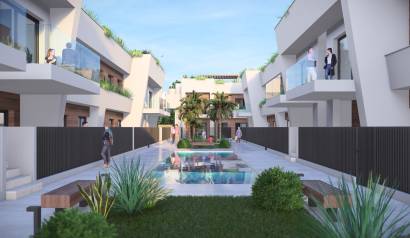 Gelegen in de charmante gemeente Torre-Pacheco, biedt dit wooncomplex een selectie van 24 woningen van het type high-bungalow en low-bungalow. Deze eigendommen zijn ontworpen om comfort en functionaliteit te bieden, aangepast aan de behoeften van verschillende gezinnen. De locatie is ideaal voor golfliefhebbers, aangezien het zich op slechts 0,5 km van een golfbaan bevindt en op 23 km van de luchthaven, wat de toegang tot nationale en internationale verbindingen vergemakkelijkt. De woningen zijn uitgerust met airconditioning, moderne apparatuur en ingebouwde kasten, wat zorgt voor een comfortabele en praktische omgeving voor dagelijks gebruik.