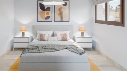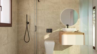 Het interieur van deze vrijstaande woningen in La Rellana is ontworpen om maximaal comfort en functionaliteit te bieden. De porseleinen tegelvloeren geven een vleugje elegantie en zijn gemakkelijk te onderhouden. De woningen zijn uitgerust met moderne apparaten, wat dagelijkse taken vergemakkelijkt. De geïntegreerde domotica maakt het mogelijk om verschillende aspecten van het huis efficiënt en comfortabel te beheren. Elektrische rolluiken voegen een extra niveau van comfort en veiligheid toe. Ingebouwde kasten in de slaapkamers bieden ruime opbergruimte, waardoor de orde en esthetiek van het huis behouden blijven.