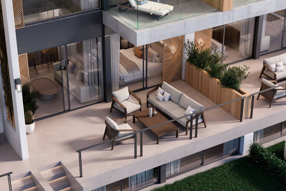 De buitenruimtes van deze geschakelde woningen in Marbella zijn ontworpen om optimaal te genieten van het klimaat en de natuurlijke omgeving. Elke woning heeft een eigen tuin, ideaal voor ontspannende momenten in de buitenlucht. De aanwezigheid van een privézwembad in elke geschakelde woning voegt een vleugje luxe en exclusiviteit toe, waardoor u kunt genieten van een verfrissende duik in de privacy van uw huis. De ruime terrassen bieden een perfecte ruimte om te genieten van het uitzicht op zee en de zonsondergangen. Bovendien is het solarium een extra ruimte die uitnodigt om het hele jaar door van de zon te genieten, en wordt het een ideale plek voor ontspanning en vrije tijd.