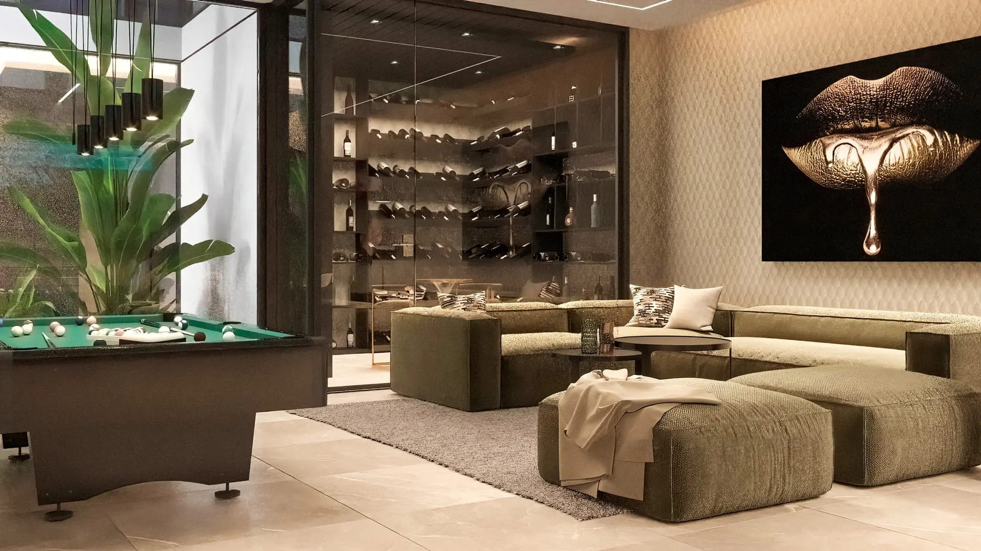 Im Inneren sind die Villen komplett möbliert und mit hochwertigen Geräten ausgestattet. Der Boden aus Feinsteinzeug verleiht Eleganz und Langlebigkeit. Die Immobilien verfügen über sechs Schlafzimmer und sieben Badezimmer und bieten viel Platz und Funktionalität. Die Smart-Home-Technologie und die Klimaanlage sorgen für eine komfortable und effiziente Umgebung. Zudem bietet die Fußbodenheizung Wärme in den kälteren Monaten. Einbauschränke bieten praktische und diskrete Aufbewahrung.