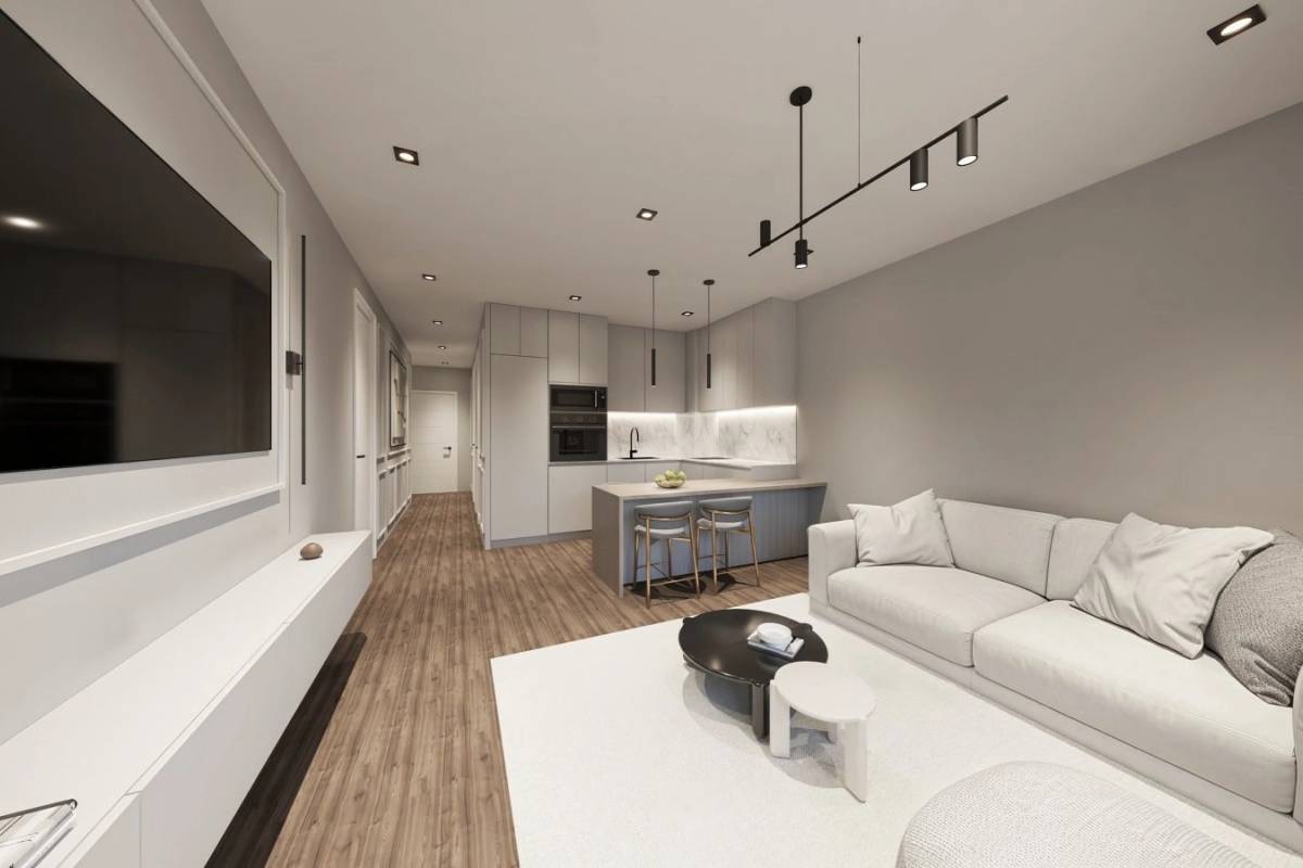 Im Inneren der Wohnungen ist die Liebe zum Detail offensichtlich. Die Wohnungen und Erdgeschosse bieten eine Aufteilung mit 1 oder 2 Schlafzimmern und 1 oder 2 Bädern, um unterschiedlichen familiären Bedürfnissen gerecht zu werden. Die Keramikböden verleihen einen modernen und pflegeleichten Touch, während die Einbauschränke den Stauraum optimieren. Die Einbauküche sorgt dafür, dass jedes Zuhause vom ersten Tag an bezugsfertig ist und eine funktionale und einladende Umgebung bietet.