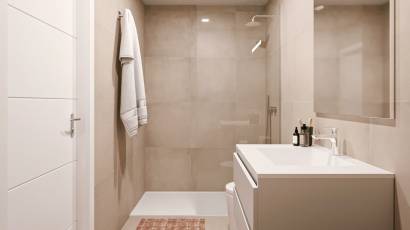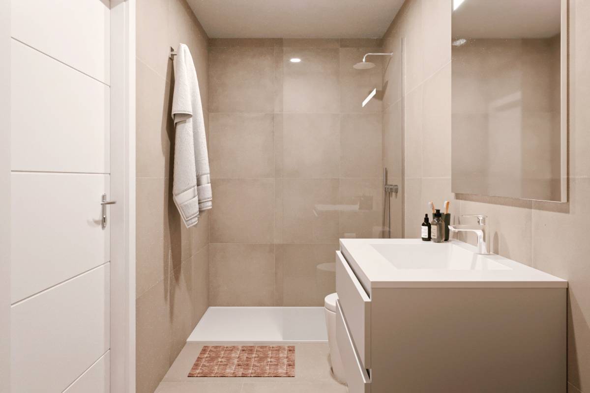 Das Innere der Bungalows ist so gestaltet, dass es einen modernen und komfortablen Raum bietet. Mit 2 Schlafzimmern und 2 Bädern ist jede Immobilie ausgestattet, um den Bedürfnissen einer Familie oder eines Paares gerecht zu werden. Die Feinsteinzeugböden verleihen einen Hauch von Raffinesse und sind pflegeleicht. Die Küche ist mit modernen Geräten ausgestattet, die den Alltag erleichtern. Elektrische Rollläden und die Video-Gegensprechanlage bieten zusätzlichen Komfort und Sicherheit. Die Klimaanlage sorgt das ganze Jahr über für ein angenehmes Ambiente, während die Einbauschränke viel Stauraum bieten.