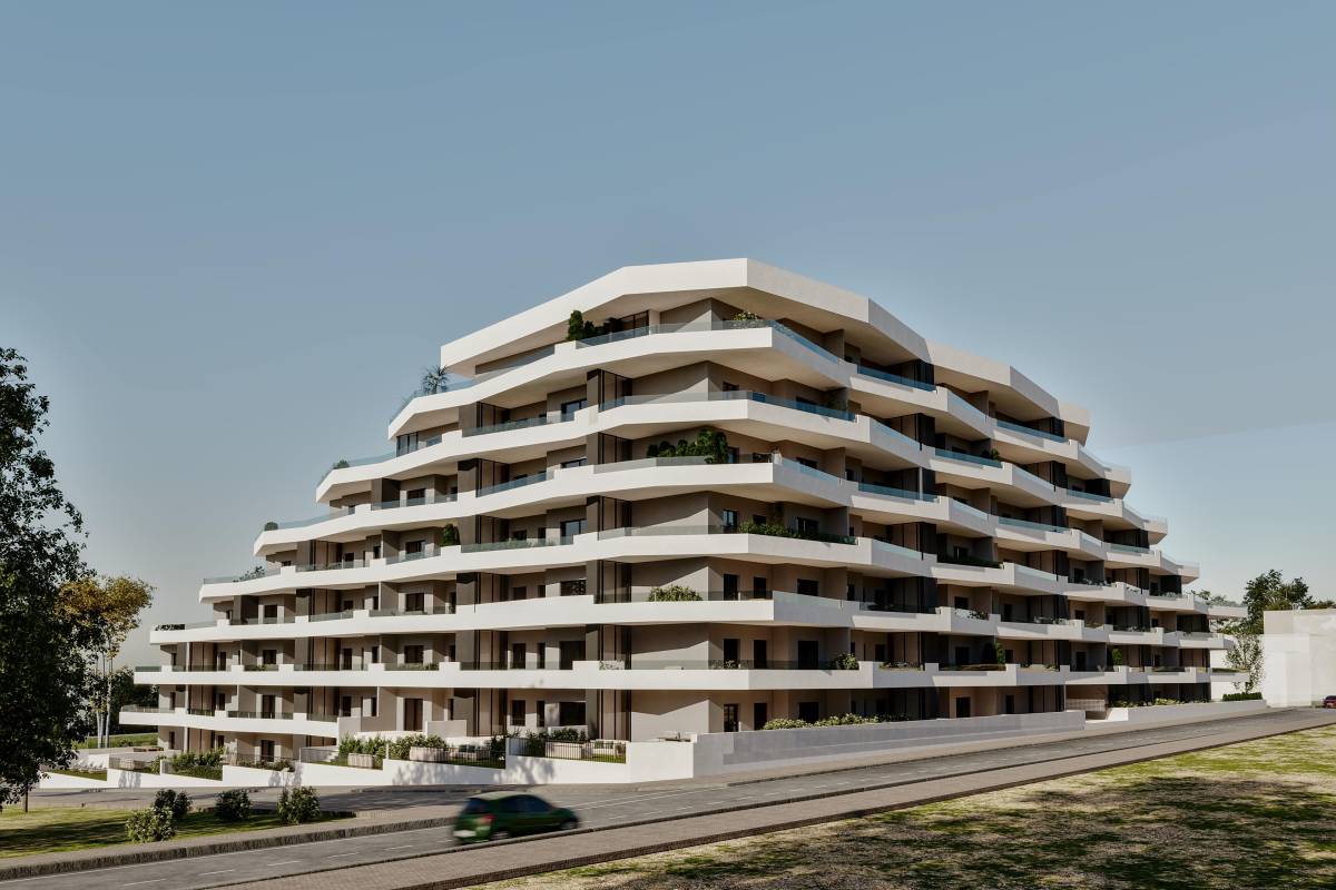 Wohnanlage mit 165 Wohnungen mit 2 und 3 Schlafzimmern, verteilt auf 7 Etagen, mit Parkplätzen und Abstellräumen, vollständig eingezäunte Wohnanlage mit Gemeinschaftspools für Erwachsene und Kinder, Grünflächen, Kinderspielplatz und einem Bereich für Erwachsene mit einem Bio-Gesundheits-Parcours, an der Costa Blanca in San Miguel de Salinas in der Nähe von Golfplätzen, Strand und Einkaufszentren gelegen.