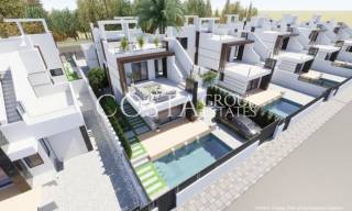 Die Außenbereiche dieser unabhängigen Häuser sind so gestaltet, dass sie das mediterrane Klima optimal nutzen. Jede Immobilie verfügt über einen privaten Pool, ideal zur Abkühlung an heißen Sommertagen. Darüber hinaus bietet das Solarium einen perfekten Raum zum Sonnenbaden oder um die Panoramaaussicht zu genießen. Das Vorhandensein eines Jacuzzis verleiht einen Hauch von Luxus und ermöglicht Momente der Entspannung im Freien. Die großzügigen Terrassen sind ideal für Abendessen im Freien oder einfach, um die Ruhe der Umgebung zu genießen.