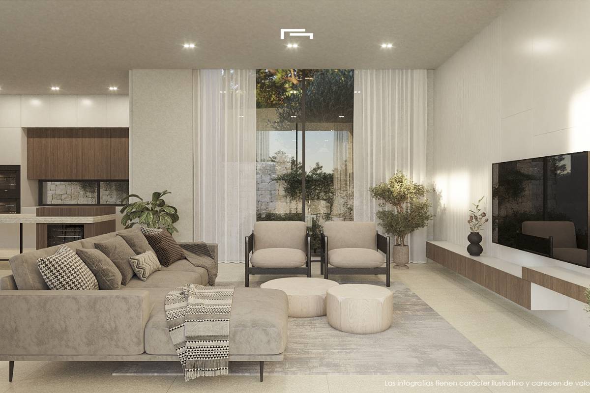 Das Innere der Villa ist sorgfältig gestaltet, um maximalen Komfort und Funktionalität zu bieten. Mit drei Schlafzimmern und vier Bädern ist die Raumaufteilung darauf ausgelegt, die Bedürfnisse einer modernen Familie zu erfüllen. Die Schlafzimmer sind mit Einbauschränken ausgestattet, die viel Stauraum bieten. Die Villa ist mit Klimaanlage und Fußbodenheizung ausgestattet, um das ganze Jahr über eine angenehme Temperatur zu gewährleisten. Elektrische Rollläden und eine Video-Gegensprechanlage verleihen dem Zuhause einen modernen und sicheren Touch. Die Küche ist mit hochwertigen Geräten ausgestattet, die die täglichen Aufgaben erleichtern und zu einem komfortablen und effizienten Lebensstil beitragen.