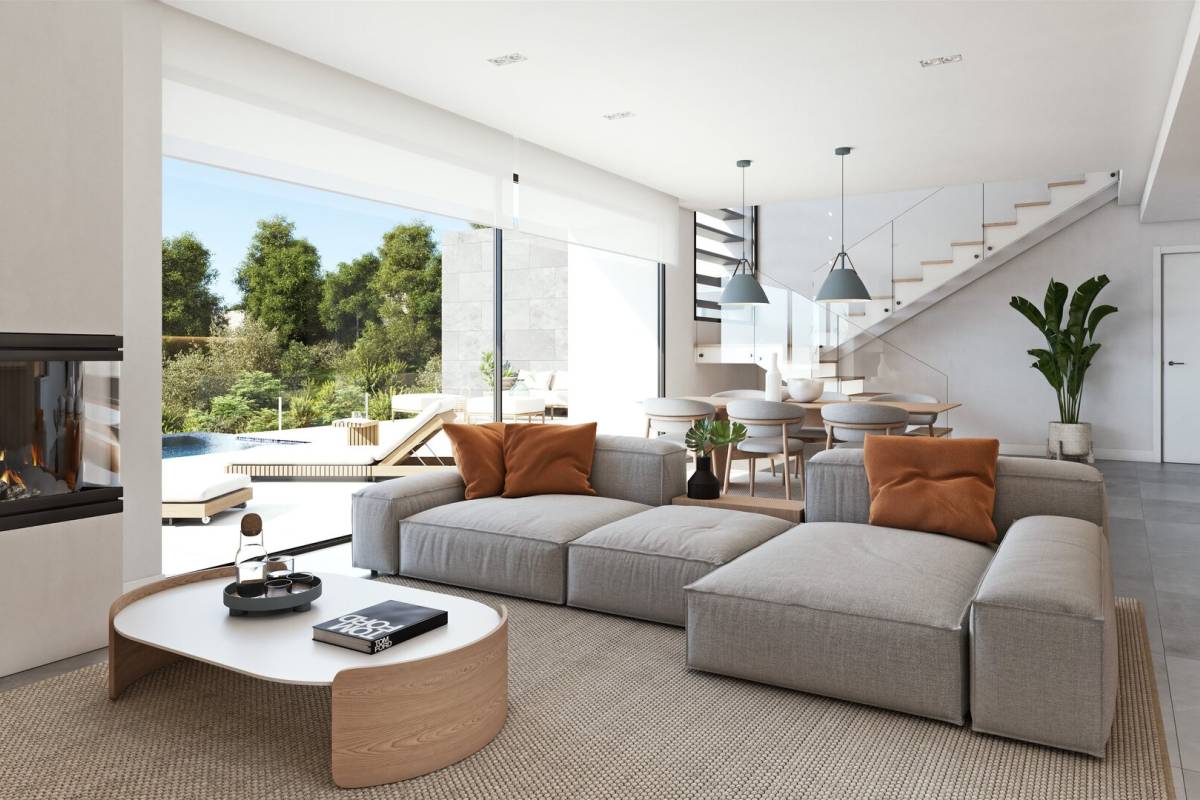 Das Innere der Villa ist sorgfältig gestaltet, um Komfort und Funktionalität zu bieten. Es verfügt über drei Schlafzimmer und vier Badezimmer, was Raum und Privatsphäre für die ganze Familie gewährleistet. Die Villa wird möbliert und mit Geräten ausgestattet geliefert, was einen unkomplizierten Umzug ermöglicht. Elektrische Rollläden und die Video-Gegensprechanlage verleihen einen modernen und sicheren Touch. Einbauschränke und die Vorinstallation der Klimaanlage sorgen für Komfort und Organisation.