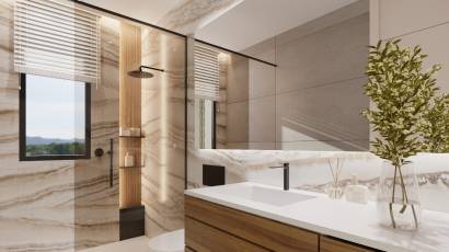Das Innere dieser unabhängigen Häuser in Torre-Pacheco ist sorgfältig gestaltet, um Komfort und Stil zu bieten. Mit drei Schlafzimmern und drei Bädern ist jeder Raum für Funktionalität und Komfort optimiert. Die Porzellanböden verleihen einen Hauch von Eleganz und sind pflegeleicht, während die Vorinstallation der Klimaanlage sicherstellt, dass das Raumklima unabhängig von der Jahreszeit immer angenehm ist. Die offene und helle Raumaufteilung der Häuser ermöglicht einen fließenden Übergang zwischen den Wohnbereichen und schafft eine einladende und moderne Atmosphäre.