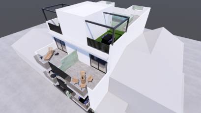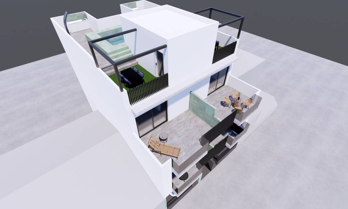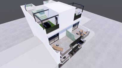 Die Innenräume dieser Immobilien sind mit Liebe zum Detail und Funktionalität gestaltet. Jede Wohnung und jedes Erdgeschoss verfügt über zwei Schlafzimmer und zwei Badezimmer und bietet einen komfortablen und gut durchdachten Raum. Die Fliesenböden verleihen einen modernen Touch und sind pflegeleicht. Einbauschränke in den Schlafzimmern bieten reichlich Stauraum, während die Vorinstallation der Klimaanlage sicherstellt, dass das Zuhause für Komfort in allen Jahreszeiten bereit ist. Die Aufteilung umfasst eine Terrasse, die den Wohnraum nach außen erweitert und es ermöglicht, das Klima und die Aussicht zu genießen.