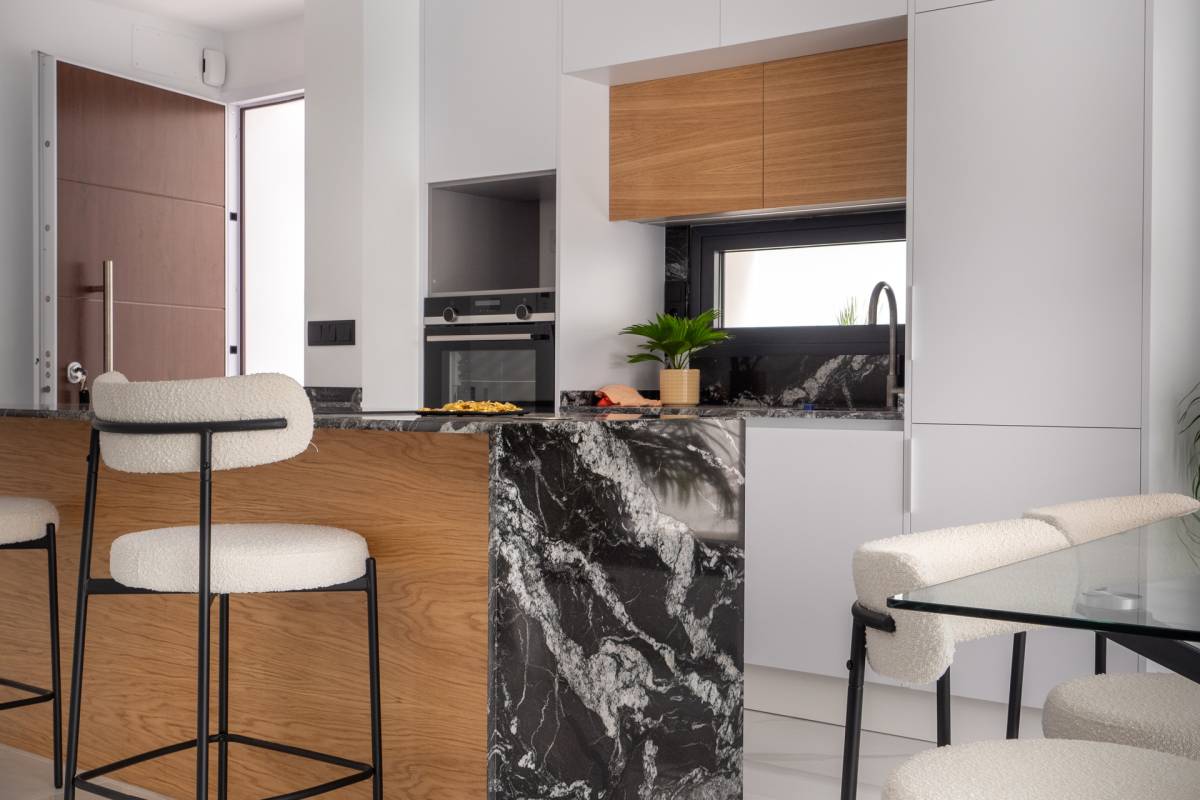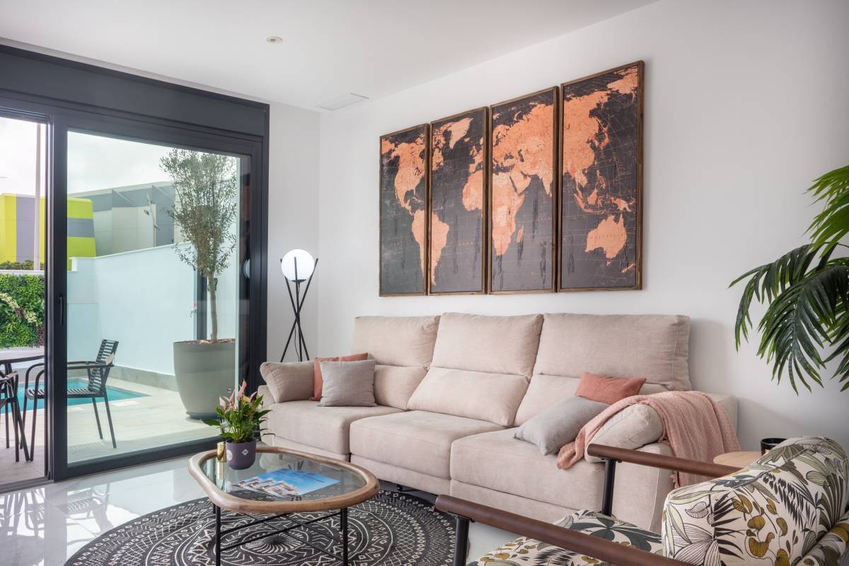 Das Innere dieser unabhängigen Wohnhäuser ist mit allen modernen Annehmlichkeiten ausgestattet. Sie verfügen über drei Schlafzimmer und drei Badezimmer und bieten einen großzügigen und funktionalen Raum für die ganze Familie. Die Keramikböden verleihen einen eleganten Touch und sind pflegeleicht. Die Häuser sind komplett möbliert und mit Haushaltsgeräten ausgestattet, was den Umzug erleichtert. Darüber hinaus bieten sie Merkmale wie Fußbodenheizung, Vorinstallation für Klimaanlagen, elektrische Rollläden und eine Video-Gegensprechanlage für mehr Sicherheit. Einbauschränke sorgen für effizienten und organisierten Stauraum.