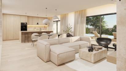 Das Innere dieser freistehenden Häuser ist mit einem Fokus auf Komfort und Funktionalität gestaltet. Die Böden aus Feinsteinzeug verleihen einen Hauch von Eleganz und sind pflegeleicht. Die Häuser sind mit modernen Geräten ausgestattet und verfügen über elektrische Rollläden für zusätzlichen Komfort. Einbauschränke bieten viel Stauraum, während die Fußbodenheizung in den kälteren Monaten für eine warme Umgebung sorgt. Darüber hinaus ermöglicht die Vorinstallation der Klimaanlage eine einfache Anpassung an die klimatischen Bedürfnisse jedes Bewohners. Die Grundrissoptionen umfassen Häuser mit 3 oder 4 Schlafzimmern und 3 Bädern, die sich an unterschiedliche Familienbedürfnisse anpassen.