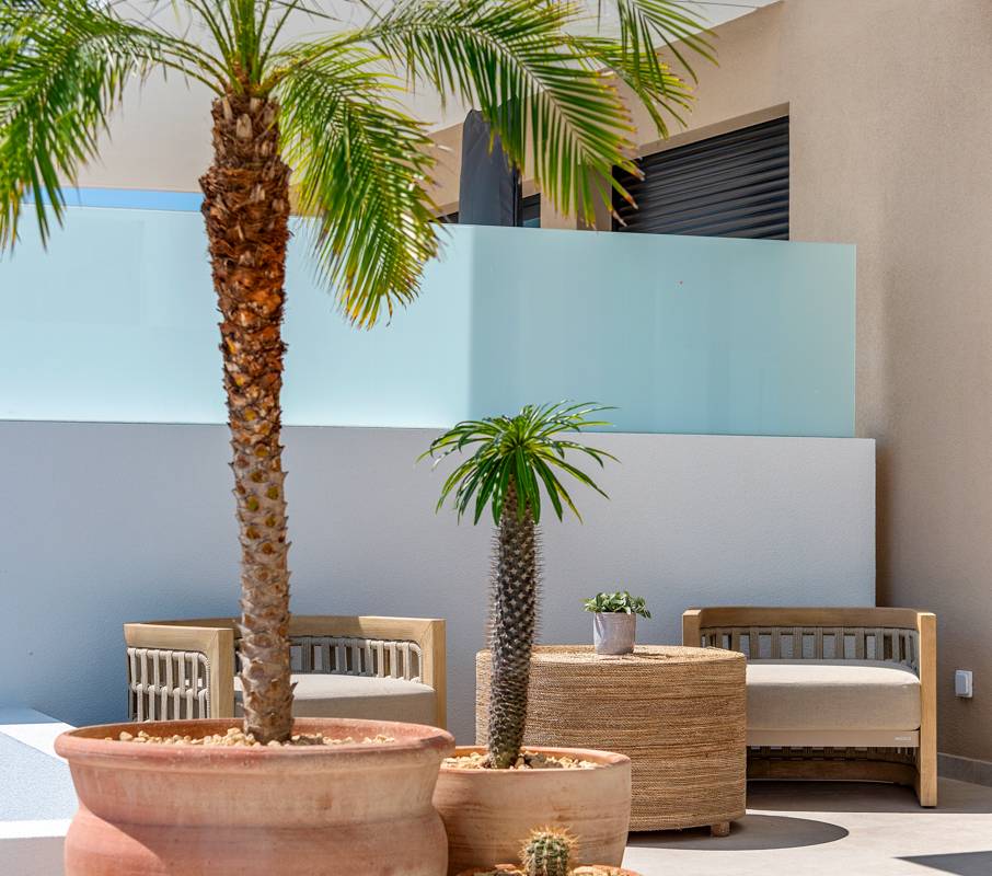 Die Außenbereiche dieser Reihenhäuser in Dolores sind so gestaltet, dass sie den Genuss des mediterranen Klimas maximieren. Jede Immobilie verfügt über einen privaten Garten, ideal für Outdoor-Aktivitäten oder einfach zum Entspannen in einer natürlichen Umgebung. Darüber hinaus bieten die Terrassen zusätzlichen Raum, um die Momente im Freien zu genießen, sei es zum Frühstück in der Sonne oder zum Abendessen bei Sonnenuntergang. Eines der herausragendsten Merkmale ist der private Pool, der eine persönliche Oase bietet, um sich an heißen Sommertagen abzukühlen. Diese Außenbereiche sind so konzipiert, dass sie eine perfekte Balance zwischen Privatsphäre und Outdoor-Genuss bieten.