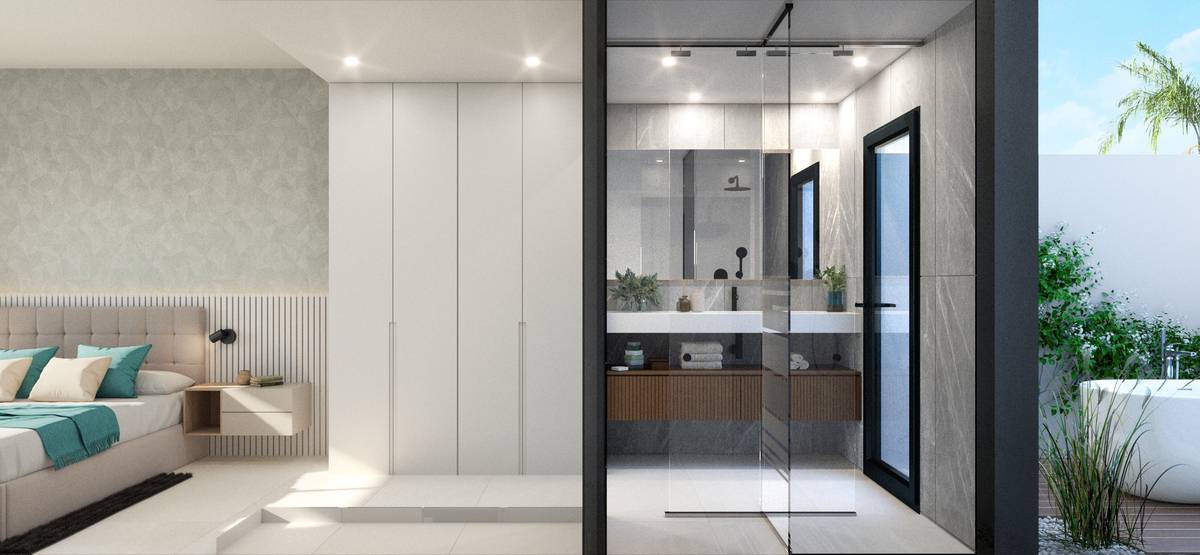 Das Außendesign dieser Immobilien in Los Alcázares konzentriert sich darauf, einen privaten und komfortablen Raum zu bieten. Jedes Haus verfügt über einen eigenen privaten Pool, ideal, um das mediterrane Klima in der Privatsphäre des eigenen Zuhauses zu genießen. Die großzügigen Terrassen bieten zusätzlichen Raum für Entspannung im Freien und ermöglichen es den Bewohnern, ungestörte Ausblicke und Momente der Entspannung zu genießen. Elektrische Rollläden verleihen einen Hauch von Modernität und Komfort, indem sie die Kontrolle über Licht und Privatsphäre jederzeit erleichtern. Darüber hinaus sorgt die Vorinstallation der Klimaanlage dafür, dass der thermische Komfort das ganze Jahr über gewährleistet ist. Die Präsenz einer privaten Garage in jeder Einheit bietet die Bequemlichkeit eines sicheren Parkplatzes und ergänzt das funktionale und ästhetische Design dieser Häuser.