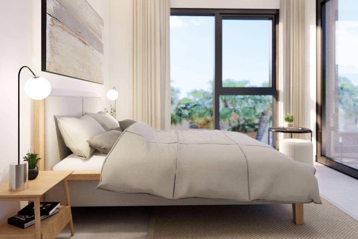 Das Innere der Reihenhäuser ist sorgfältig gestaltet, um maximalen Komfort zu bieten. Mit einer Aufteilung, die 3 Schlafzimmer und 3 Badezimmer umfasst, ist jeder Raum für das moderne Leben optimiert. Die Böden aus Feinsteinzeug verleihen Eleganz und Langlebigkeit. Die Immobilien sind mit Klimaanlage, elektrischen Rollläden und Haushaltsgeräten ausgestattet, um eine komfortable und funktionale Umgebung zu gewährleisten. Einbauschränke bieten effizienten Stauraum und halten die Räume ordentlich und frei von Unordnung.