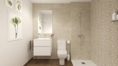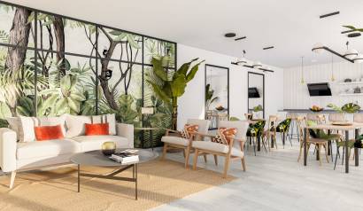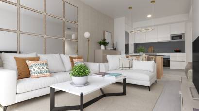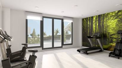 Das Innere der Wohnungen ist sorgfältig gestaltet, um Komfort und Stil zu bieten. Die Apartments verfügen über Plattformböden, die einen modernen und eleganten Touch verleihen. Sicherheit und Komfort sind mit einer Video-Gegensprechanlage und elektrischen Rollläden gewährleistet. Einbauschränke bieten effizienten Stauraum, während die Vorinstallation der Klimaanlage dafür sorgt, dass das Raumklima immer angenehm ist. Die Wohnungen sind in Konfigurationen mit 2 oder 3 Schlafzimmern erhältlich, alle mit 2 Bädern, was sie ideal für Familien sowie Paare oder Einzelpersonen macht, die zusätzlichen Raum suchen.