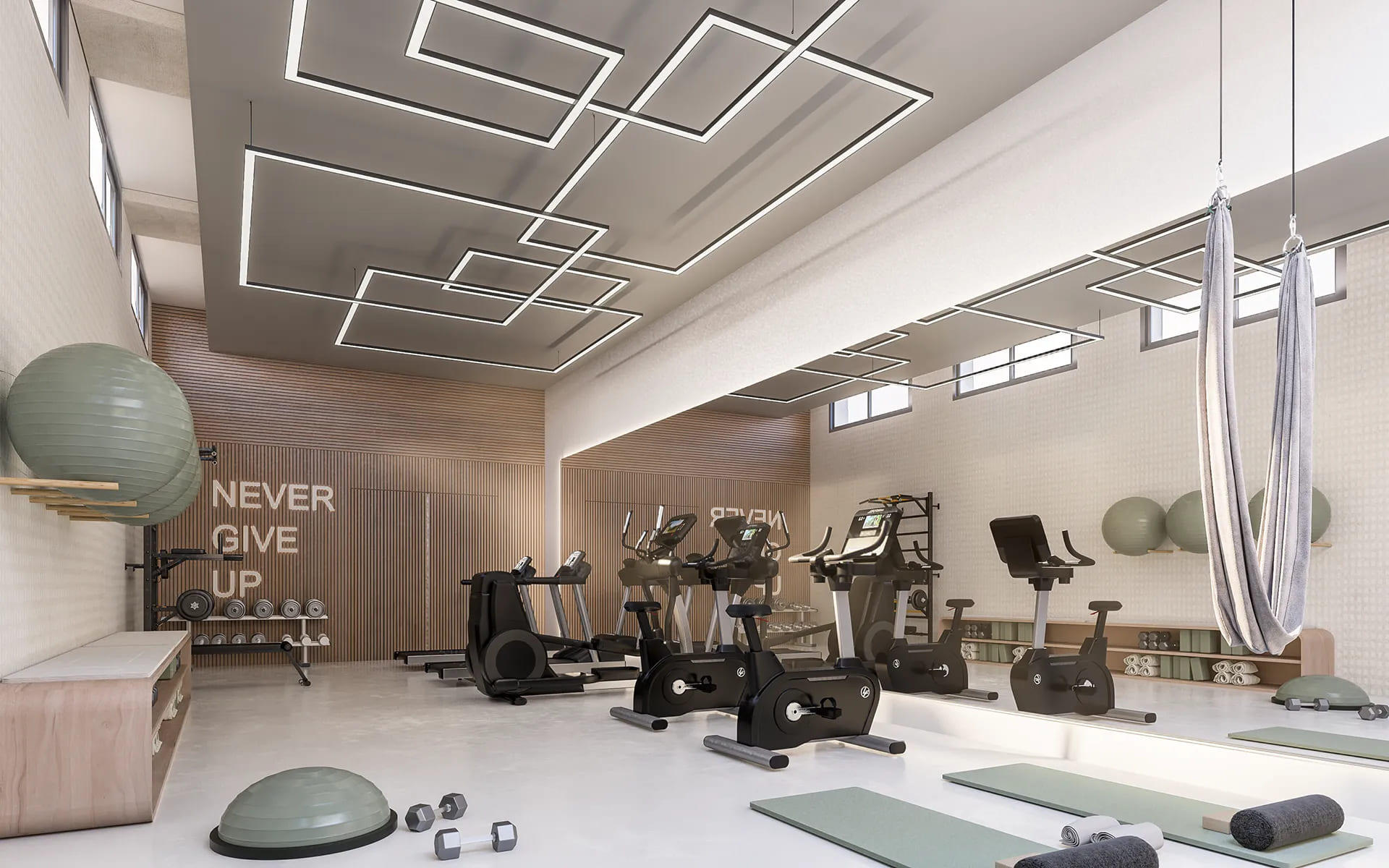Das Innere der Wohnungen wurde entworfen, um eine moderne und komfortable Atmosphäre zu bieten. Alle Immobilien verfügen über Feinsteinzeugböden, die einen Hauch von Eleganz verleihen und pflegeleicht sind. Die Technologie ist in jeder Ecke präsent, mit Smart-Home-Systemen, die die Hausverwaltung erleichtern, Klimaanlagen, die das ganze Jahr über eine angenehme Temperatur gewährleisten, und Fußbodenheizung, die außergewöhnlichen thermischen Komfort bietet. Die Küchen sind mit hochwertigen Geräten ausgestattet, und die Einbauschränke in den Schlafzimmern bieten viel Stauraum. Die Bäder, die je nach Typologie in zwei oder drei Konfigurationen erhältlich sind, sind mit modernen und funktionalen Oberflächen gestaltet.