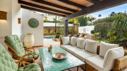 Das Äußere der Villa ist so gestaltet, dass es das mediterrane Klima optimal nutzt. Hervorzuheben ist der private Garten, der ideal für entspannende Momente im Freien ist. Die Terrasse ist ein perfekter Ort, um Mahlzeiten im Freien zu genießen oder einfach die natürliche Umgebung der Immobilie zu betrachten. Darüber hinaus verfügt die Villa über einen privaten Pool, der eine persönliche Oase bietet, um sich an heißen Sommertagen abzukühlen. Das Außendesign ergänzt perfekt den architektonischen Stil der Villa und schafft eine visuelle Harmonie, die sich in die Landschaft von Benahavís einfügt.