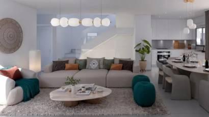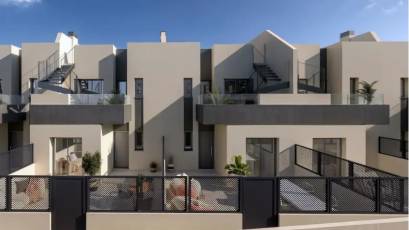 Im Inneren sind die Häuser mit Merkmalen ausgestattet, die maximalen Komfort gewährleisten. Jedes Reihenhaus verfügt über drei Schlafzimmer und drei Badezimmer und bietet somit einen großzügigen und funktionalen Raum für die ganze Familie. Einbauschränke sind ein Standardmerkmal und bieten praktische und elegante Aufbewahrungslösungen. Die Raumaufteilung wurde so gestaltet, dass sie das natürliche Licht und die Belüftung optimiert und in jedem Winkel des Hauses eine gemütliche und helle Atmosphäre schafft.