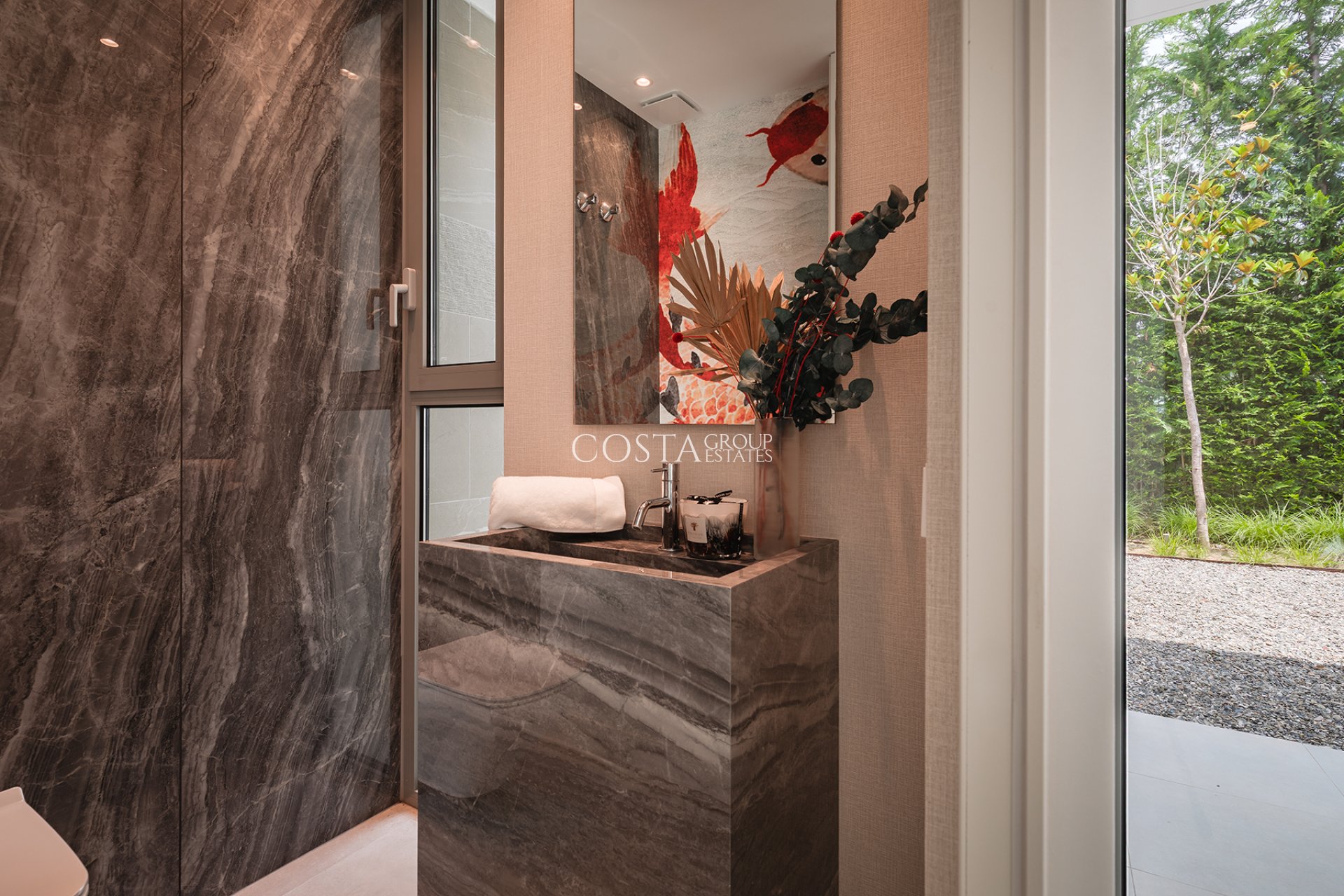 Das Innere der Villa ist so gestaltet, dass es maximalen Komfort und Funktionalität bietet. Die Immobilie ist mit Klimaanlage ausgestattet, die das ganze Jahr über eine angenehme Temperatur gewährleistet. Hochwertige Elektrogeräte sind inklusive, was den Alltag erleichtert. Einbauschränke bieten reichlich Stauraum und halten das Zuhause organisiert und frei von Unordnung. Darüber hinaus verfügt die Villa über eine Video-Gegensprechanlage, die ein zusätzliches Maß an Sicherheit und Komfort bietet. Jedes der fünf Schlafzimmer ist so gestaltet, dass es Privatsphäre und Komfort bietet, während die fünf Badezimmer sicherstellen, dass alle Familienmitglieder ihren eigenen Raum haben.