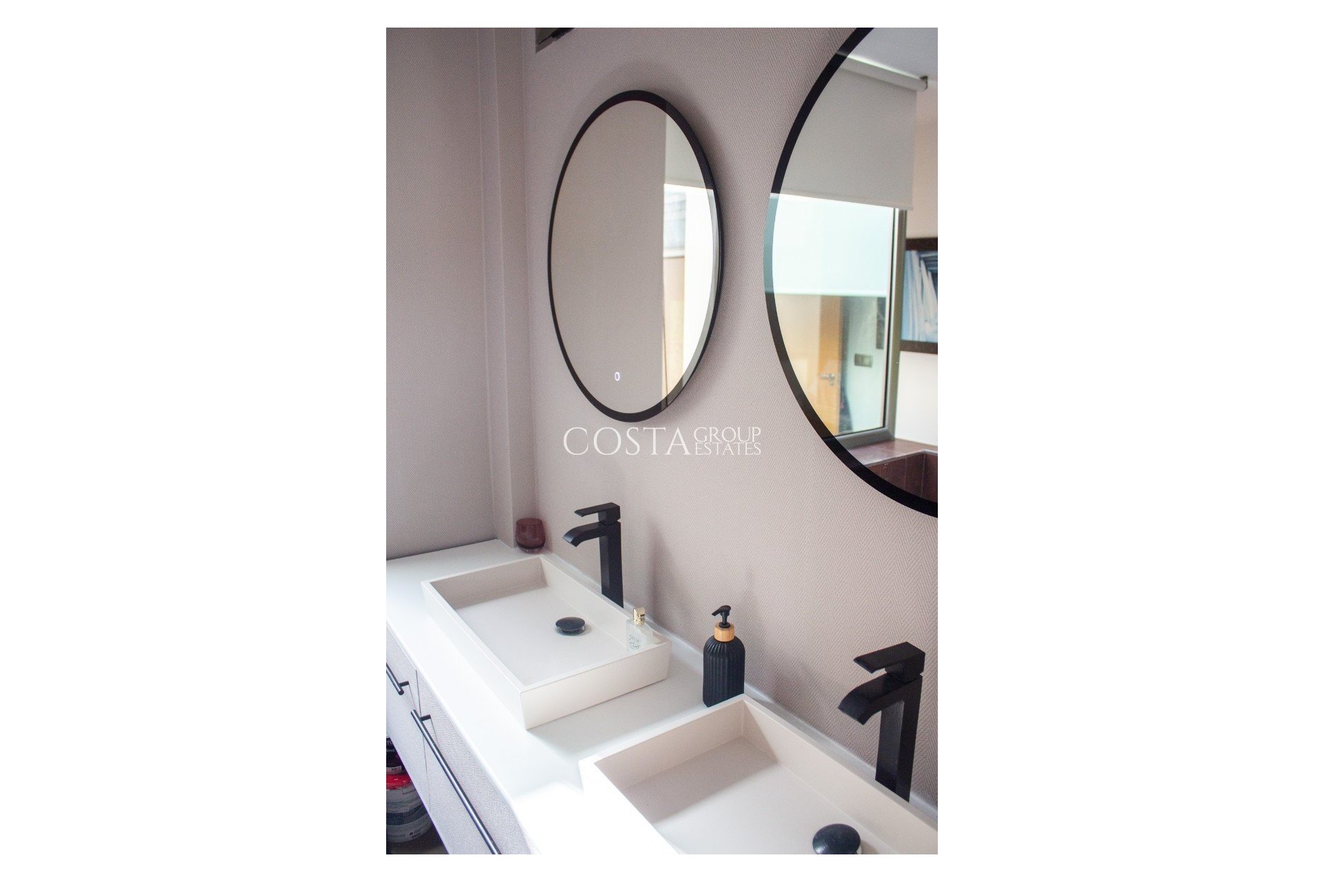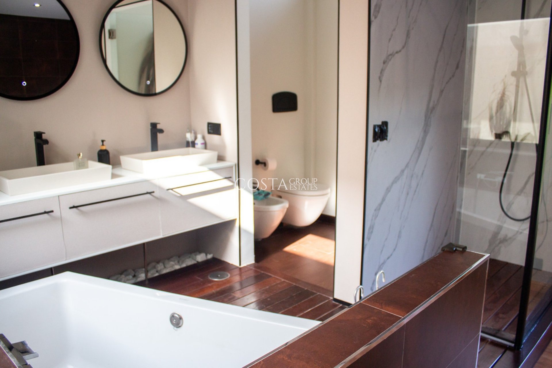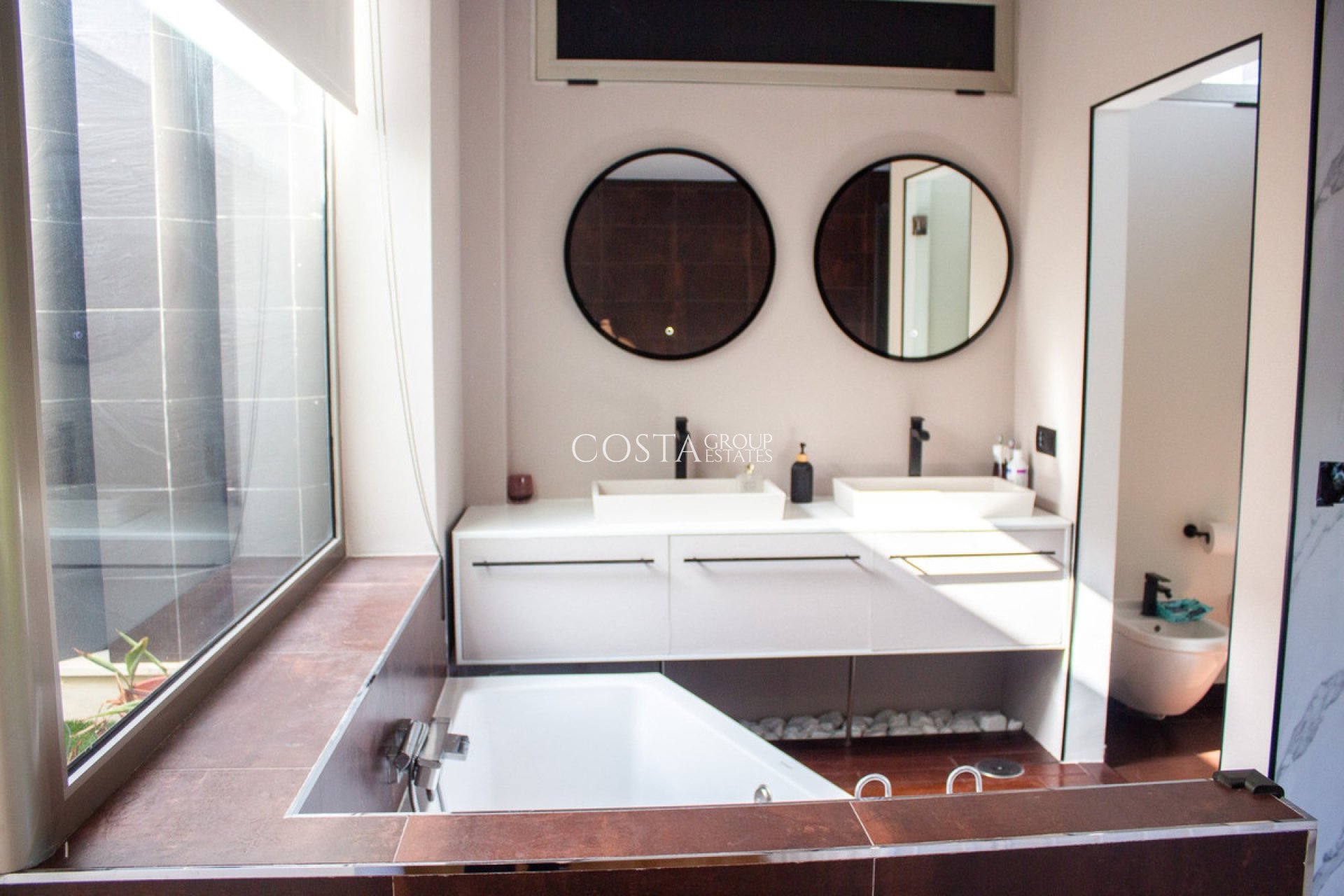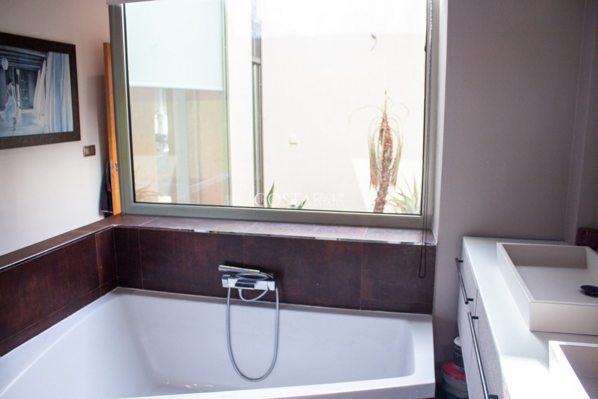 Das Haus verfügt über fünf Schlafzimmer , darunter eine Master-Suite mit Ankleidezimmer und offenem Badezimmer mit Badewanne , das sich zu einem eleganten, lichtdurchfluteten Innengarten mit üppiger Bepflanzung öffnet. Außerdem gibt es zwei weitere helle Schlafzimmer, ein Badezimmer und ein Gäste-WC. Insgesamt verfügt das Anwesen über drei Badezimmer und Gäste-WCs , verteilt auf die verschiedenen Etagen.