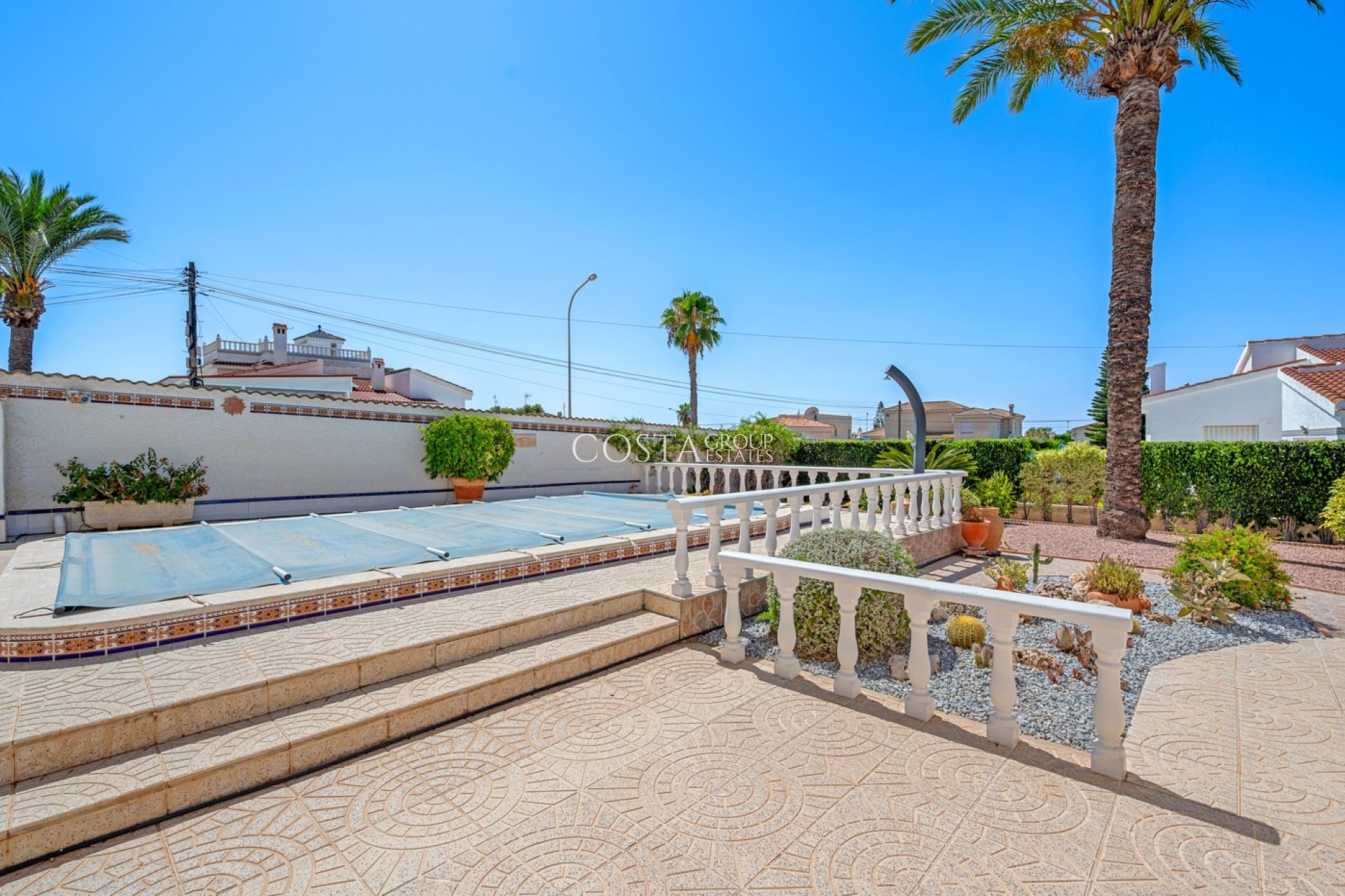 Willkommen in dieser wunderschönen, freistehenden Villa mit drei Schlafzimmern und vier Badezimmern in erstklassiger Lage in der begehrten Wohngegend Ciudad Quesada, nur eine kurze Autofahrt vom pulsierenden Stadtzentrum entfernt. Mit einer Vielzahl von Geschäften, Bars und Restaurants in der Nähe bietet diese Lage Komfort und Lifestyle in einer der beliebtesten Wohngegenden der Costa Blanca. Das Anwesen liegt auf einem großzügigen, vollständig eingezäunten Grundstück und verfügt über einen gepflegten Garten mit viel Platz im Freien, um die mediterrane Sonne zu genießen. Das Haus bietet Blick auf einen privaten Pool und verfügt über einen sicheren Parkplatz abseits der Straße sowie eine Garage. Eine große, umlaufende Terrasse an der Vorderseite der Villa bietet einen erhöhten Blick auf die Gärten und lädt zum Entspannen oder für gesellige Stunden ein. Zusätzlich bietet eine wunderschön verglaste Außenterrasse das ganze Jahr über einen gemütlichen Ort, um die ruhige Umgebung zu genießen. Im Inneren ist die Villa hell und einladend. Ein geräumiger Essbereich führt in ein gemütliches, lichtdurchflutetes Wohnzimmer mit Klimaanlage und Kamin für ganzjährigen Komfort. Die separate Küche ist großzügig bemessen und mit allen notwendigen Geräten ausgestattet. Das Haupthaus verfügt über zwei Schlafzimmer. Besonders beeindruckend ist die Master-Suite mit Klimaanlage, Einbauschränken und einem eigenen Badezimmer mit ebenerdiger Dusche. Das zweite Doppelschlafzimmer, das derzeit als Arbeitszimmer genutzt wird, verfügt ebenfalls über Einbauschränke und eine Klimaanlage und ist somit vielseitig nutzbar. Die Garage bietet Platz für ein Fahrzeug und umfasst einen Waschraum sowie ein Badezimmer mit Dusche. Dieser Raum kann bei Bedarf in ein viertes Schlafzimmer umgewandelt werden. Über der Garage befindet sich ein separates Doppelschlafzimmer mit Klimaanlage, Einbauschrank und eigenem Duschbad. Ideal für Gäste oder die Großfamilie. Eine private Sonnenterrasse mit Blick auf den Pool rundet das Wohnerlebnis im Freien ab und bietet einen weiteren ruhigen Ort zum Sonnenbaden. Diese außergewöhnliche Villa bietet die perfekte Kombination aus Privatsphäre, Platz und Komfort und eignet sich ideal für den Dauerwohnbereich, den Familienurlaub oder als Mietinvestition in einer der begehrtesten Lagen der Region. Für weitere Informationen oder einen Besichtigungstermin kontaktieren Sie uns bitte.