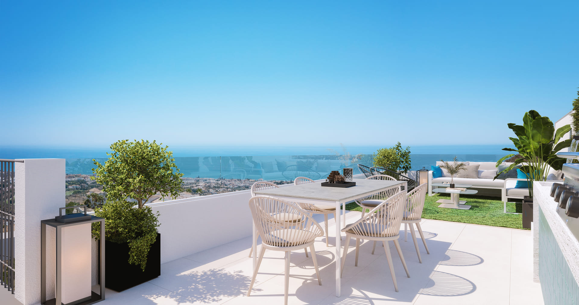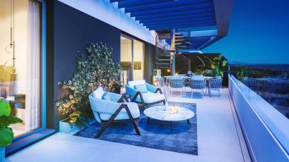 The exteriors of this residential in Rincón de la Victoria have been designed to offer an environment of tranquility and natural beauty. The ground-floor homes feature private gardens, providing a personal green space to enjoy the outdoors. Terraces are a common feature in all properties, offering a perfect place to relax and enjoy the sea views. The penthouses, on the other hand, have solariums, an exclusive space for sunbathing or enjoying an outdoor dinner with panoramic views. The proximity to the sea, just 4 km, allows for enjoying the sea breeze and beach walks at any time. The architecture of the complex harmoniously integrates with the surroundings, creating a serene and welcoming atmosphere.