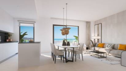 Located in the charming Rincón de la Victoria, this exclusive residential complex offers a selection of 15 homes designed to meet the most demanding needs. With options including apartments, ground-floor, and penthouses, each property has been carefully designed to maximize comfort and functionality. The location is unbeatable, just 4 km from the sea, allowing for sea views from many of the homes. Additionally, the airport is only 28 km away, facilitating access for frequent travelers. The properties feature 2 or 3 bedrooms and 2 bathrooms, making them ideal for both families and couples seeking additional space. The pre-installation of air conditioning and included appliances ensure a modern and comfortable lifestyle from day one. Built-in wardrobes offer efficient storage, while laminate floors add a touch of contemporary elegance.