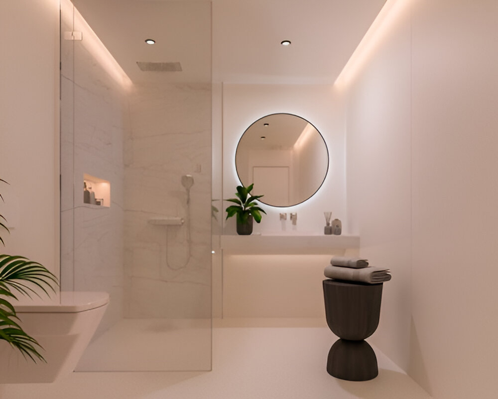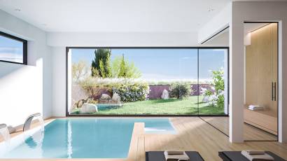The interior of the homes is carefully designed to offer a cozy and functional space. The layout options include properties with 2 or 3 bedrooms and 2 bathrooms, adapting to different family needs. High-quality finishes include air conditioning and built-in wardrobes, ensuring comfort and practicality. Some units also feature a jacuzzi, adding a touch of luxury and relaxation. The arrangement of the interior spaces is designed to make the most of the sea views, creating a bright and open environment.