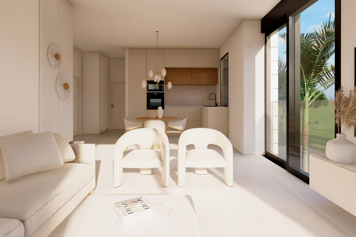 The interior of the bungalows is carefully designed to offer comfort and style. With two bedrooms, each property is equipped to meet the needs of a family or those seeking additional space for guests. The two bathrooms ensure privacy and convenience, facilitating daily life. Built-in wardrobes in the bedrooms offer practical and elegant storage solutions, keeping the space tidy and functional. The interior layout is designed to maximize space and natural light, creating a welcoming and modern atmosphere.