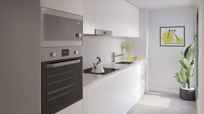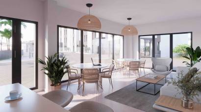 The interiors of the homes are carefully designed to offer comfort and functionality. The apartments, ground floors, and penthouses feature 2 or 3 bedrooms and 2 bathrooms, adapting to different family needs. Porcelain tile floors add a touch of elegance and durability, while built-in wardrobes provide efficient storage. Additionally, the homes are equipped with charging points for electric cars, reflecting a commitment to sustainability and modernity.