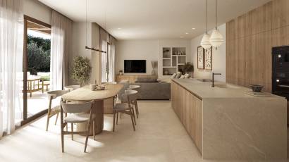The exterior of the villas in Benissa is carefully designed to maximize enjoyment of the Mediterranean climate. Each property includes a private garden, perfect for enjoying outdoor moments. Additionally, the villas feature a spacious terrace, ideal for relaxing or entertaining guests. The presence of a pergola adds a touch of elegance and functionality, providing shade and style to the outdoor space. The jewel of the exterior is the private pool, offering an oasis of freshness and fun just steps from the front door.